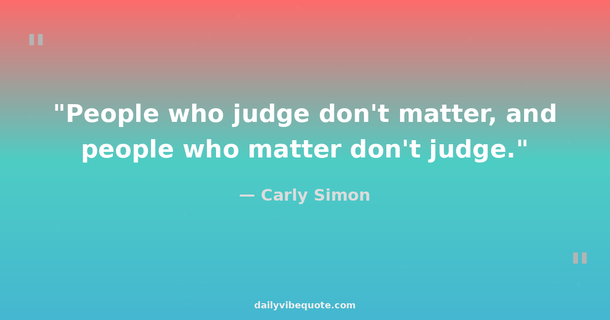 "People who judge don't matter, and people who matter don't judge."