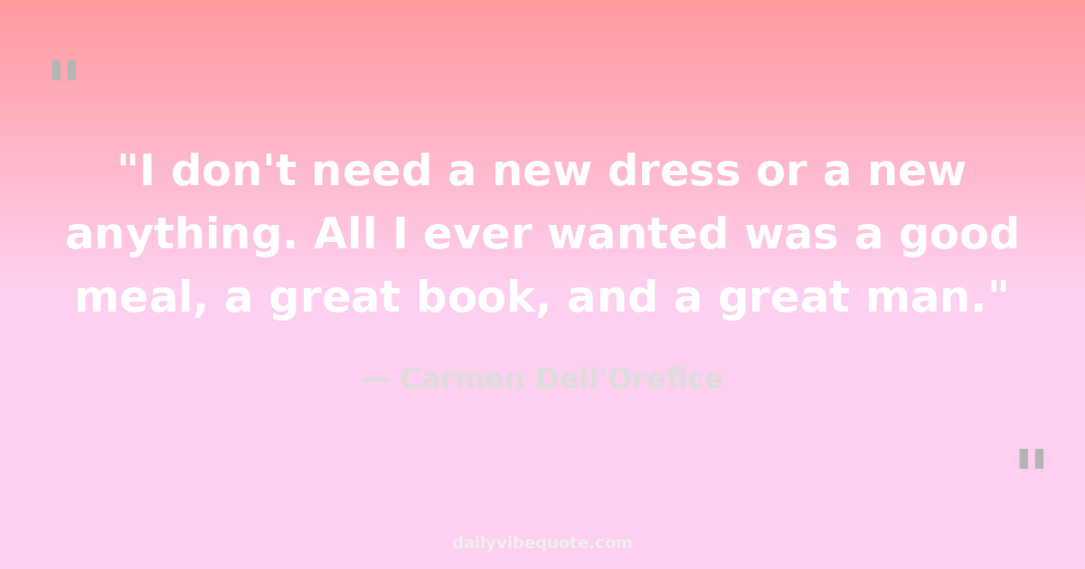 "I don't need a new dress or a new anything. All I ever wanted was a good meal, a great book, and a great man."