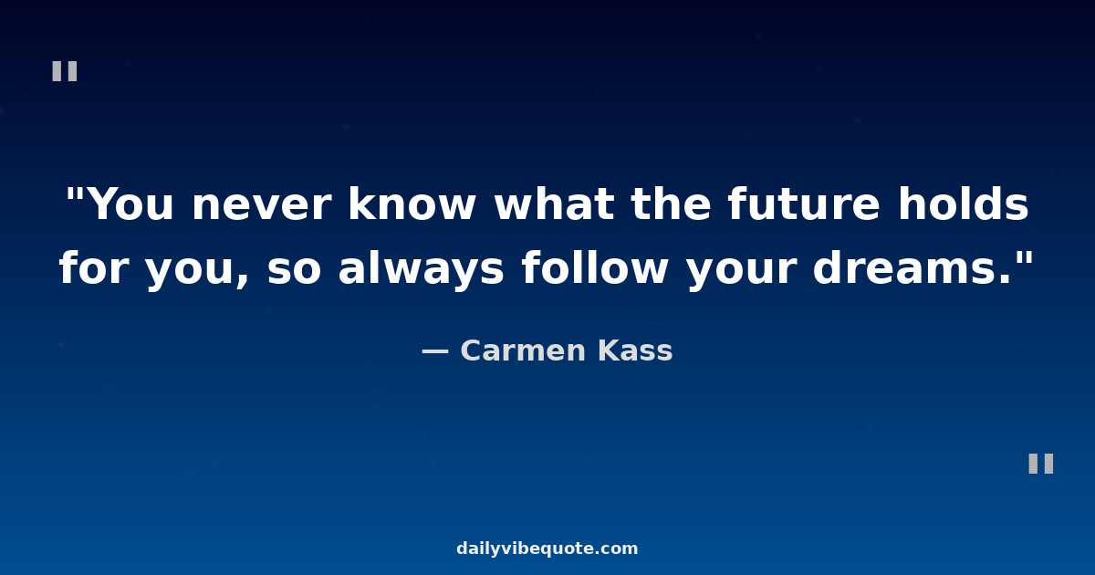 "You never know what the future holds for you, so always follow your dreams."