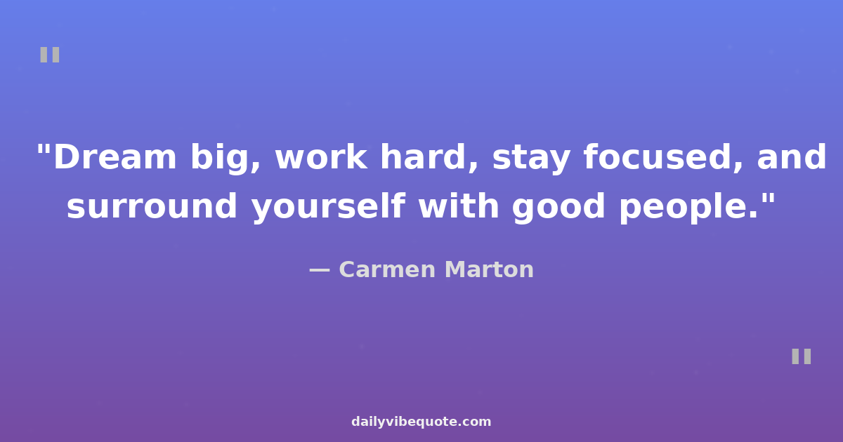 "Dream big, work hard, stay focused, and surround yourself with good people."