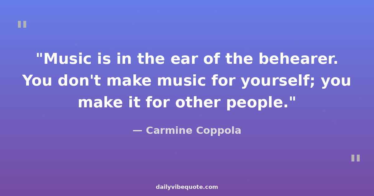 "Music is in the ear of the behearer. You don't make music for yourself; you make it for other people."
