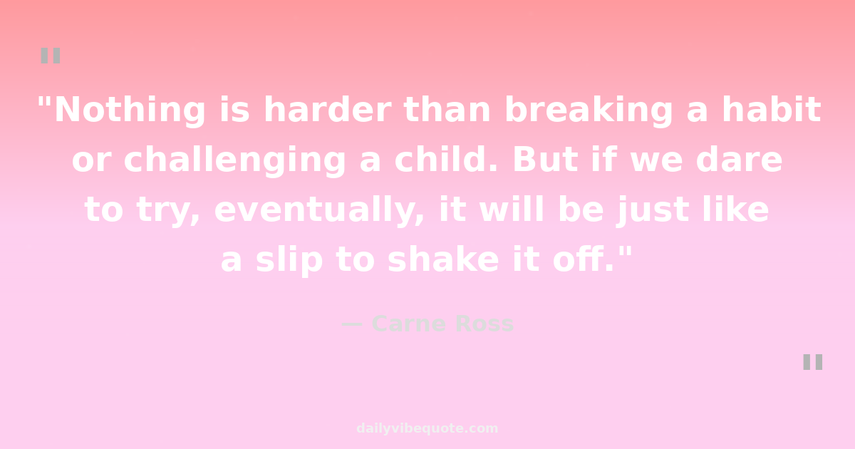 "Nothing is harder than breaking a habit or challenging a child. But if we dare to try, eventually, it will be just like a slip to shake it off."