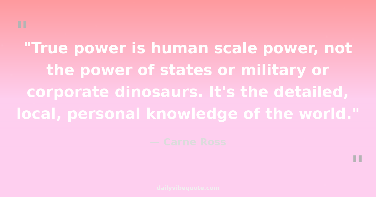 "True power is human scale power, not the power of states or military or corporate dinosaurs. It's the detailed, local, personal knowledge of the world."