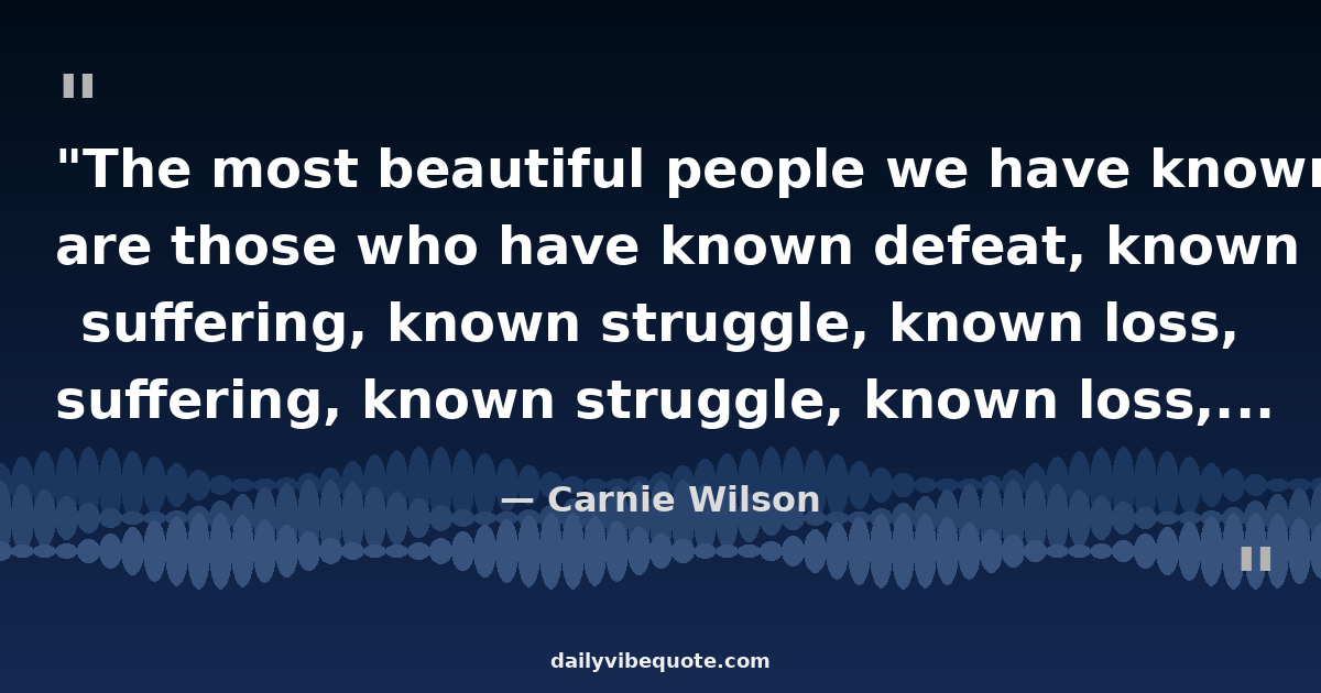 "The most beautiful people we have known are those who have known defeat, known suffering, known struggle, known loss, and have found their way out of those depths."