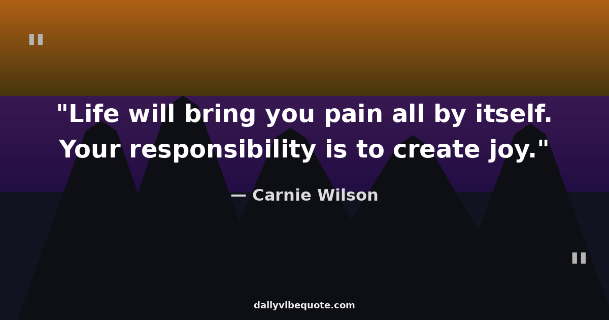 "Life will bring you pain all by itself. Your responsibility is to create joy."