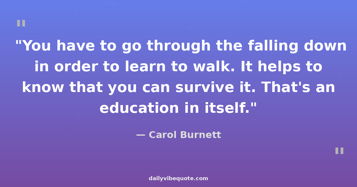 "You have to go through the falling down in order to learn to walk. It helps to know that you can survive it. That's an education in itself."