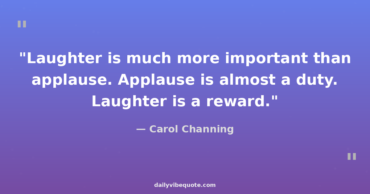 "Laughter is much more important than applause. Applause is almost a duty. Laughter is a reward."