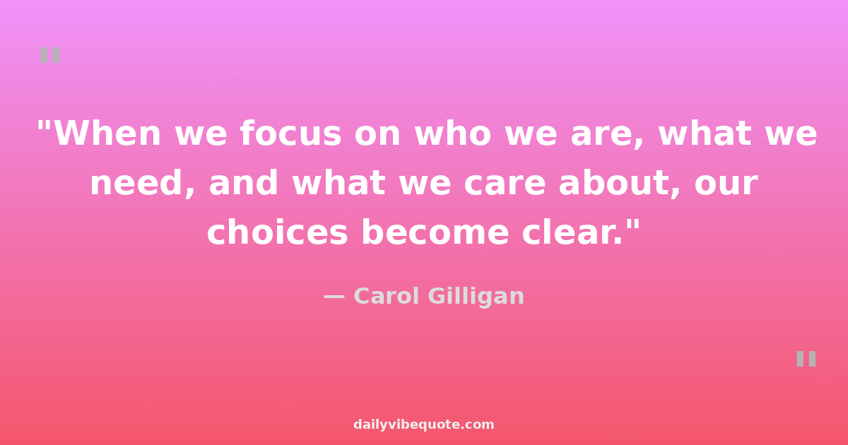 "When we focus on who we are, what we need, and what we care about, our choices become clear."