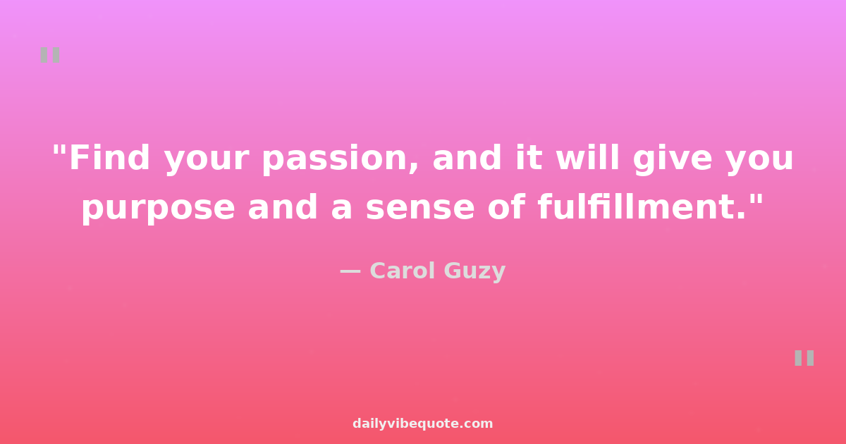 "Find your passion, and it will give you purpose and a sense of fulfillment."