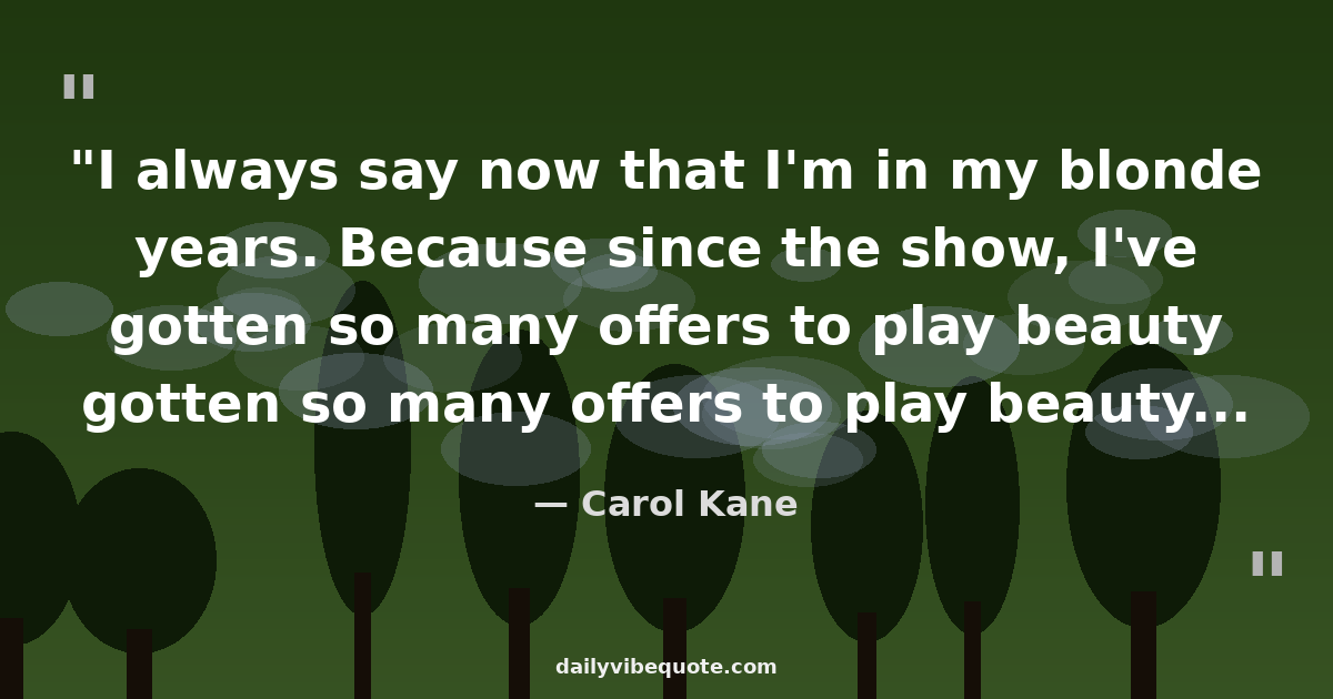 "I always say now that I'm in my blonde years. Because since the show, I've gotten so many offers to play beauty queens that I don't think I am available for."
