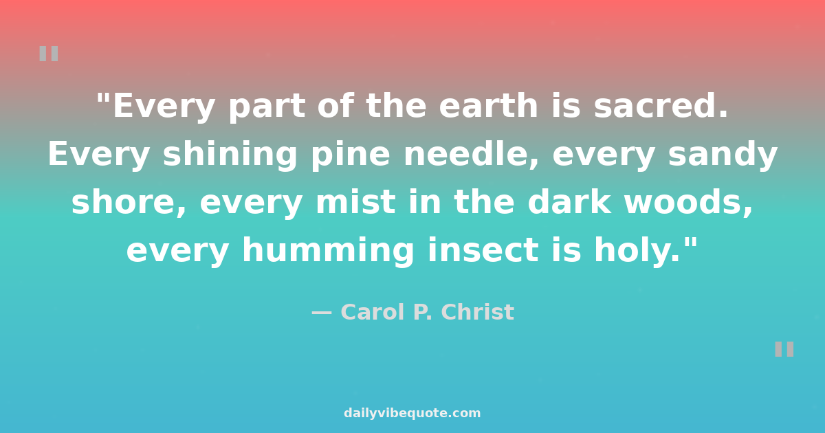 "Every part of the earth is sacred. Every shining pine needle, every sandy shore, every mist in the dark woods, every humming insect is holy."