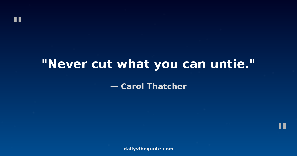 "Never cut what you can untie."