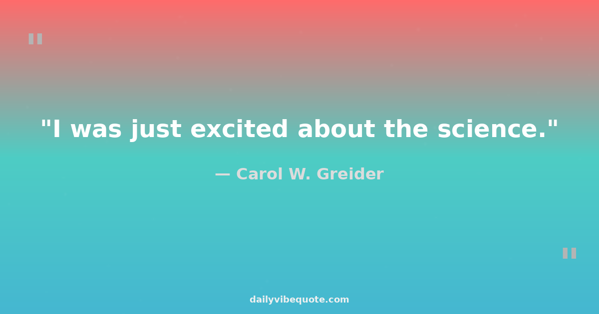 Carol W. Greider is an American molecular biologist who was awarded the Nobel Prize in Physiology or Medicine in 2009 for the discovery of how chromosomes are protected by telomeres and the enzyme telomerase. She was born in 1961 in California and earned her Ph.D. in molecular biology at the University of California, Berkeley. Greider's groundbreaking research on telomeres has significantly advanced our understanding of aging, cancer, and genetic diseases.