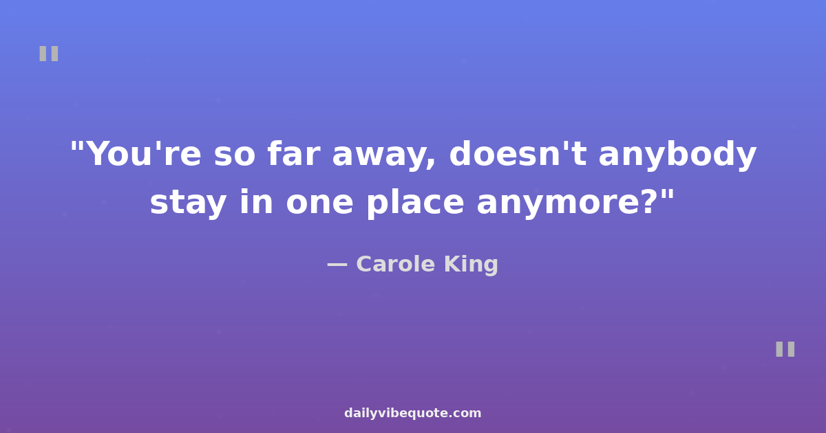 "You're so far away, doesn't anybody stay in one place anymore?"