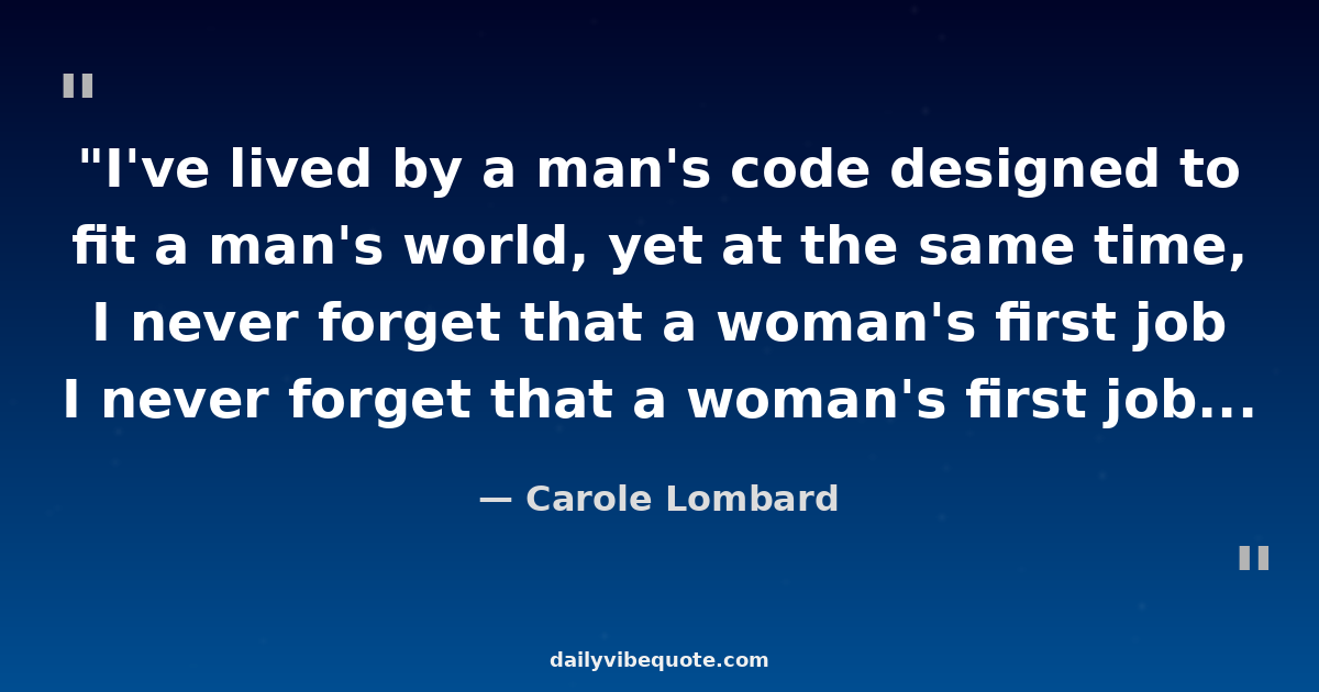 "I've lived by a man's code designed to fit a man's world, yet at the same time, I never forget that a woman's first job is to choose the right shade of lipstick."