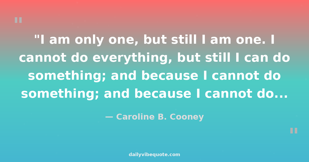 "I am only one, but still I am one. I cannot do everything, but still I can do something; and because I cannot do everything, I will not refuse to do something that I can do."
