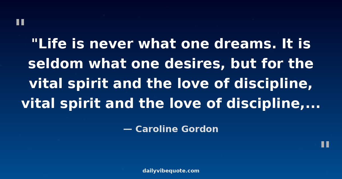 "Life is never what one dreams. It is seldom what one desires, but for the vital spirit and the love of discipline, one would be tempted to turn away and become carefree, to drift with the stream, but discipline, however harsh, is a lamp that lights the way, and leads to heights most men never reach."