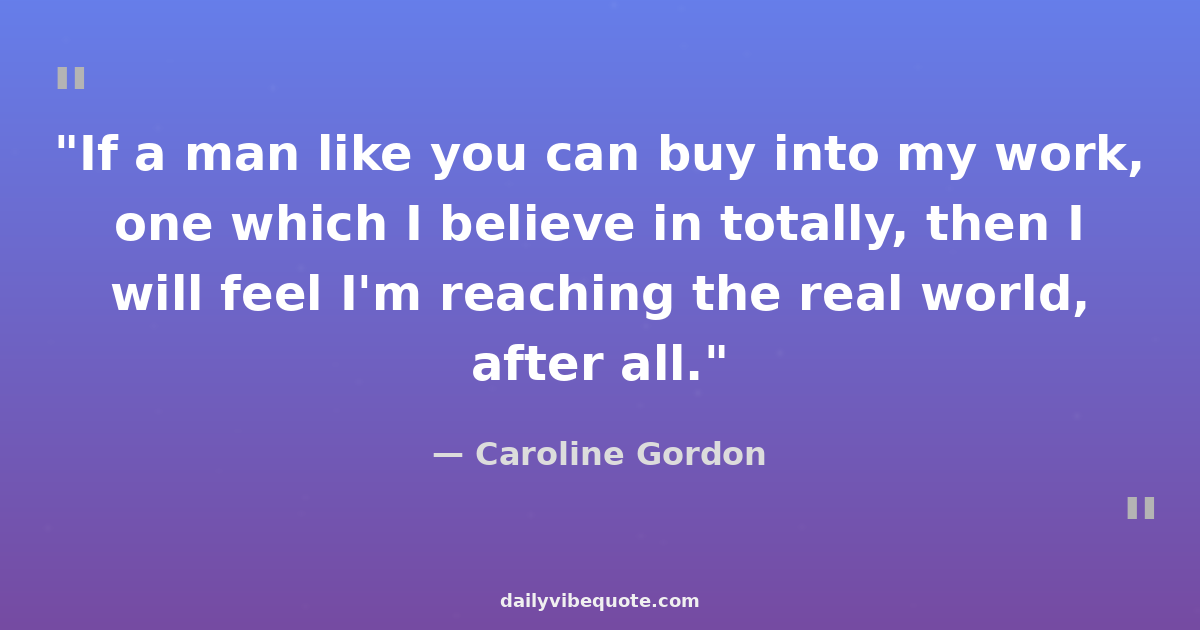 "If a man like you can buy into my work, one which I believe in totally, then I will feel I'm reaching the real world, after all."