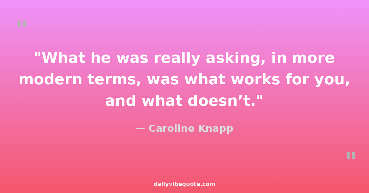 "What he was really asking, in more modern terms, was what works for you, and what doesn’t."