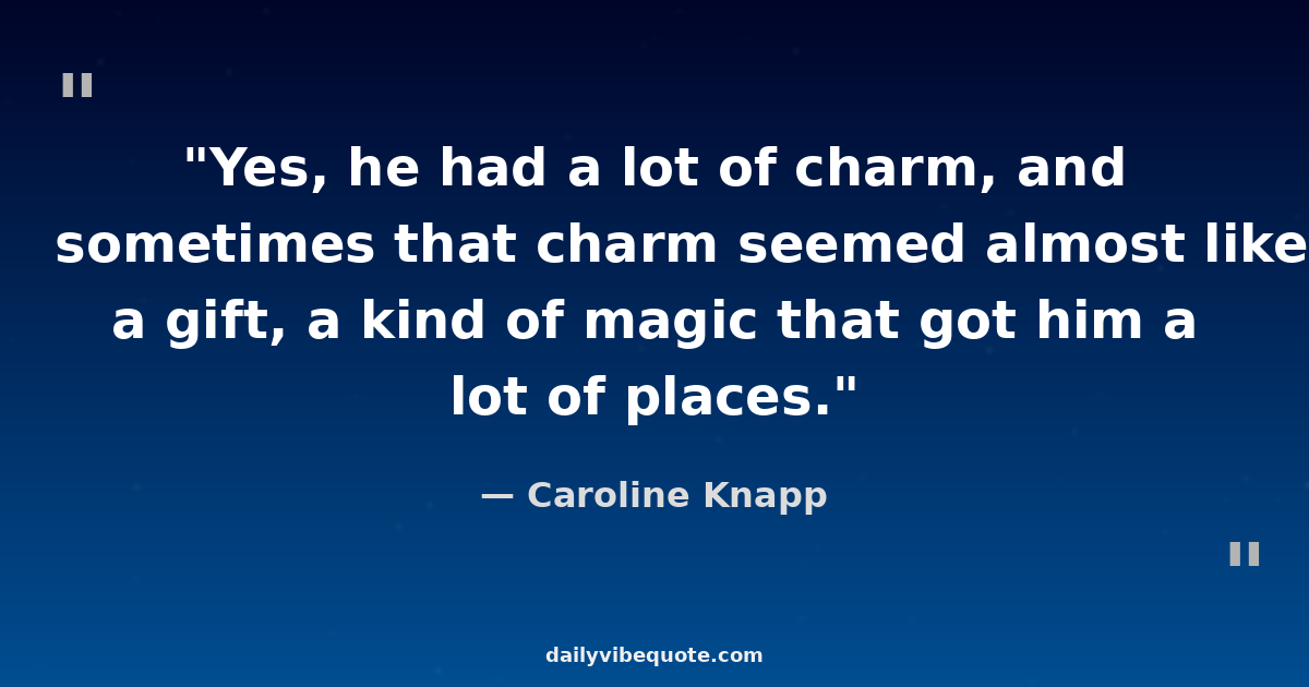 "Yes, he had a lot of charm, and sometimes that charm seemed almost like a gift, a kind of magic that got him a lot of places."