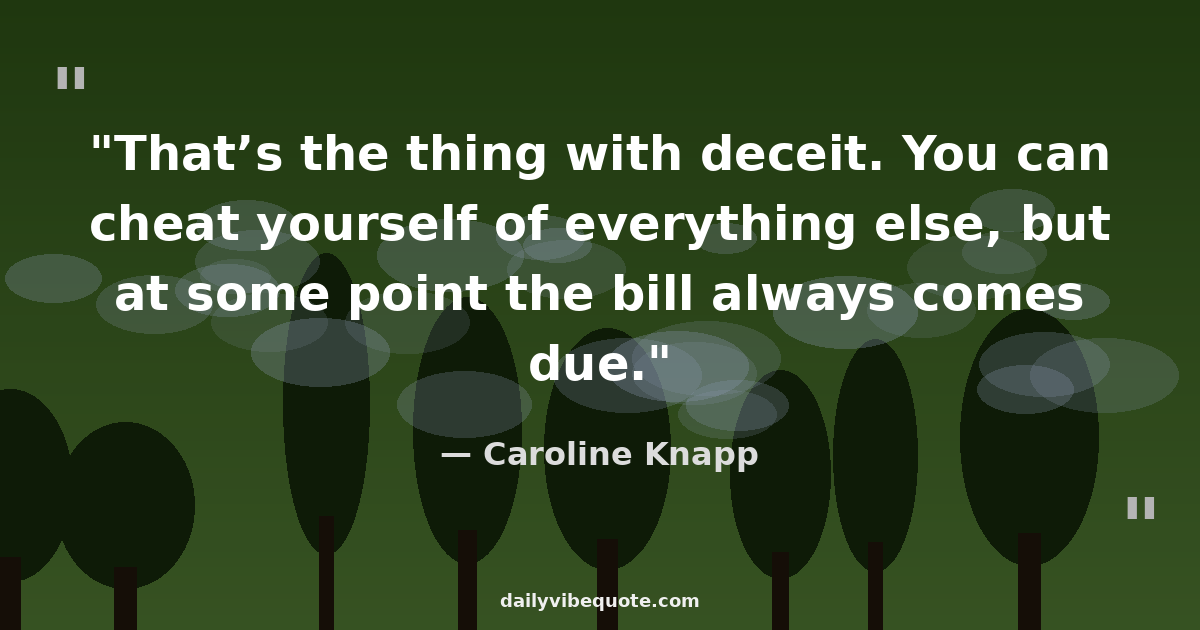 "That’s the thing with deceit. You can cheat yourself of everything else, but at some point the bill always comes due."