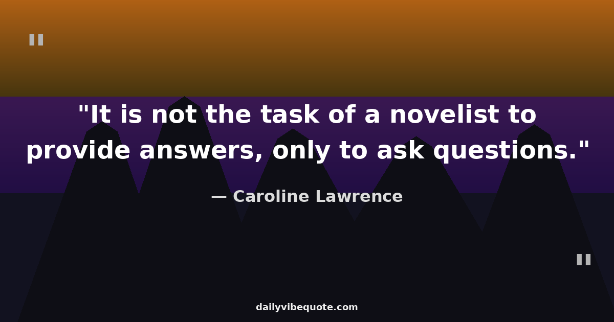 "It is not the task of a novelist to provide answers, only to ask questions."