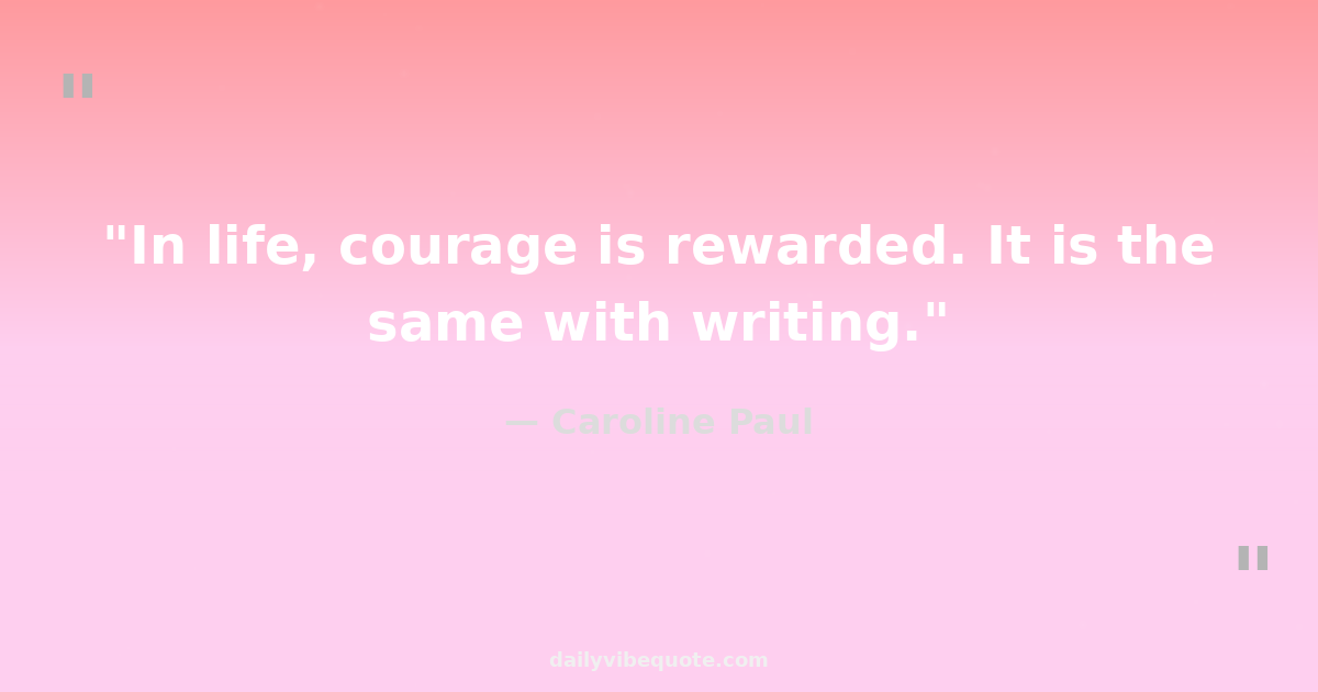 "In life, courage is rewarded. It is the same with writing."