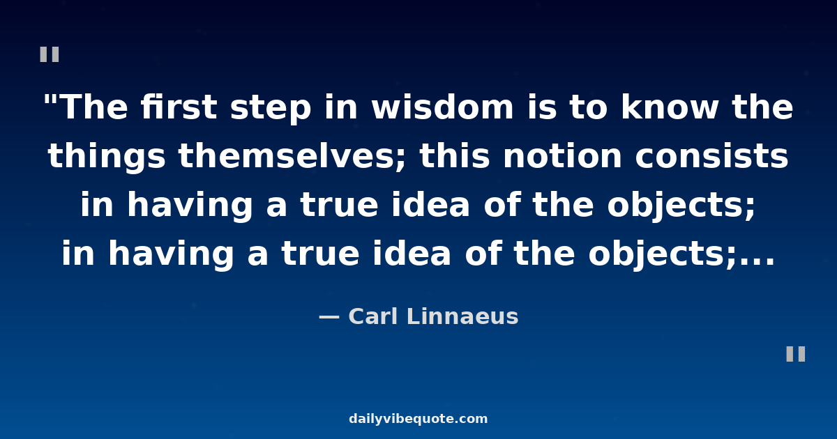 "The first step in wisdom is to know the things themselves; this notion consists in having a true idea of the objects; objects are distinguished and known by classifying them methodically and giving them appropriate names."