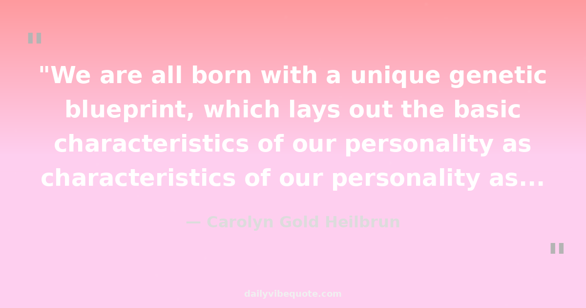 "We are all born with a unique genetic blueprint, which lays out the basic characteristics of our personality as well as our physical health and appearance... And yet, we serve as the authors of our own creative evolution."