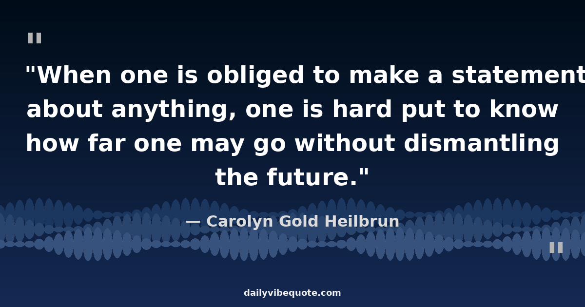 "When one is obliged to make a statement about anything, one is hard put to know how far one may go without dismantling the future."