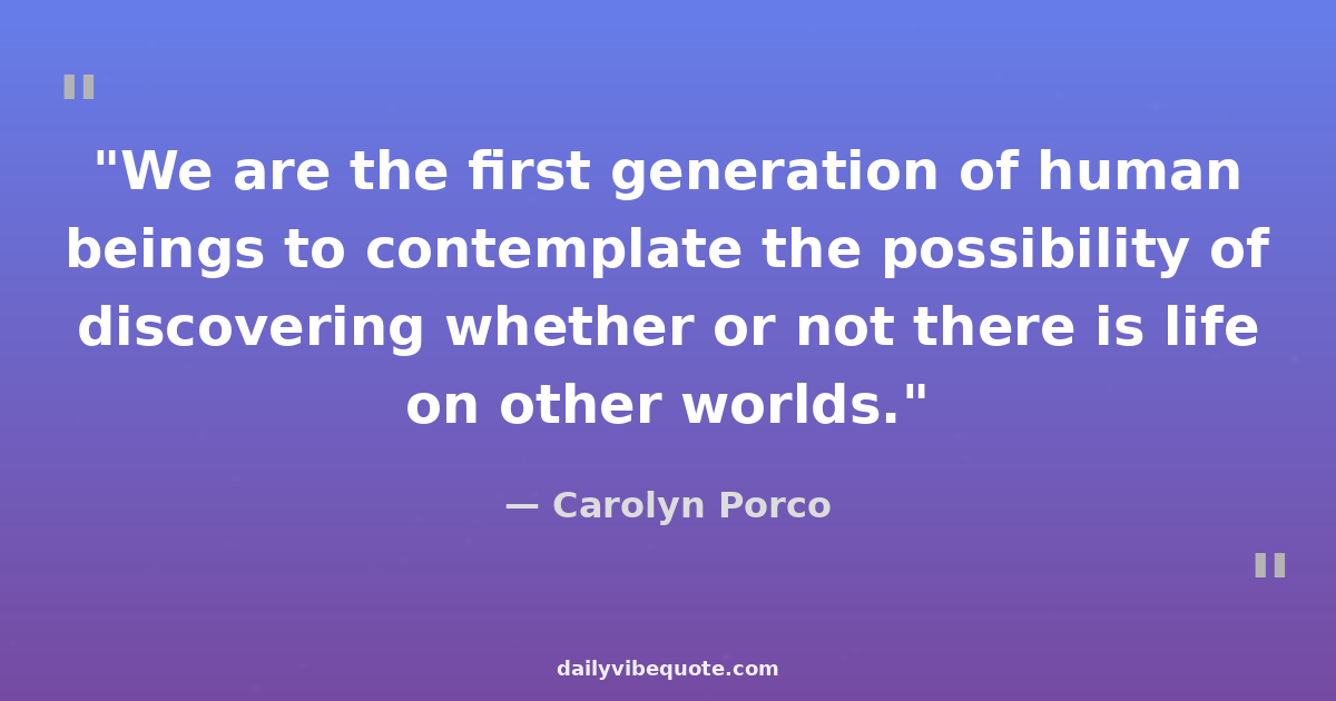 "We are the first generation of human beings to contemplate the possibility of discovering whether or not there is life on other worlds."