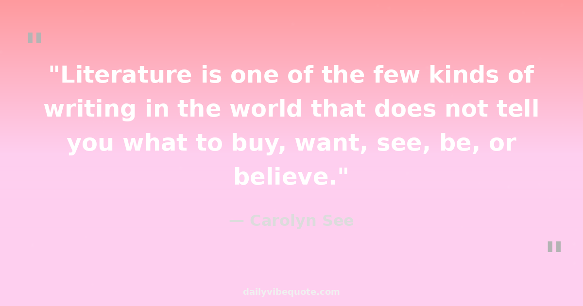 "Literature is one of the few kinds of writing in the world that does not tell you what to buy, want, see, be, or believe."