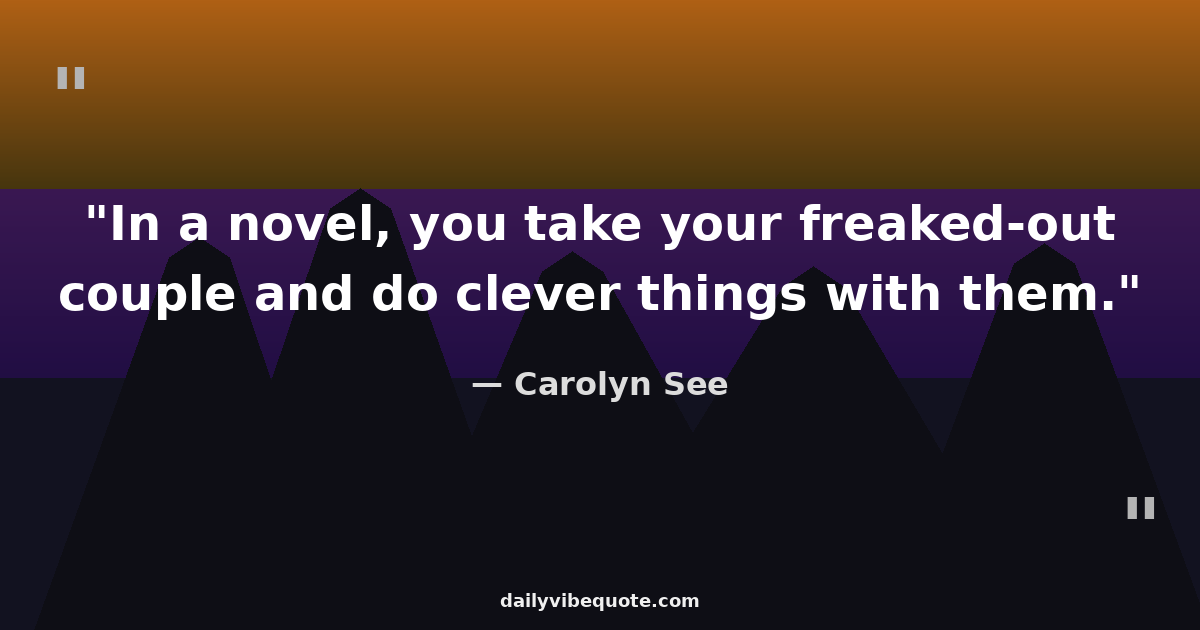 "In a novel, you take your freaked-out couple and do clever things with them."