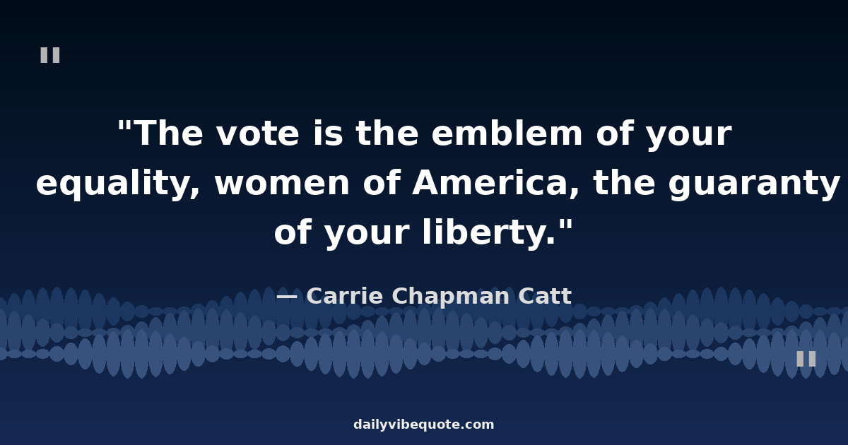 "The vote is the emblem of your equality, women of America, the guaranty of your liberty."