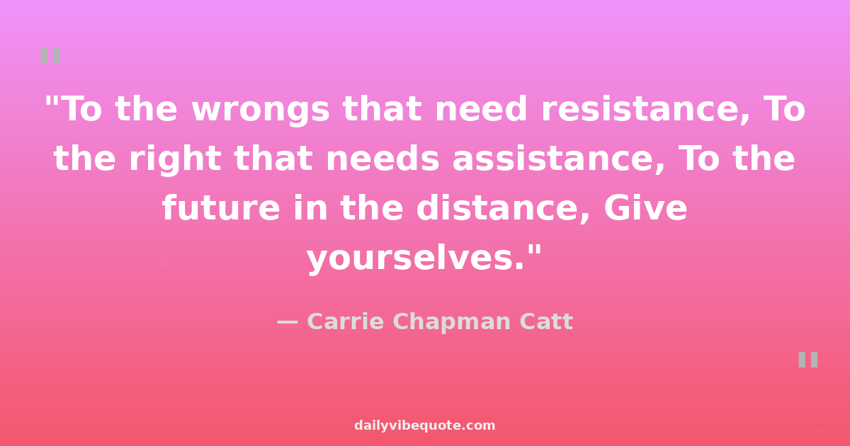 "To the wrongs that need resistance, To the right that needs assistance, To the future in the distance, Give yourselves."