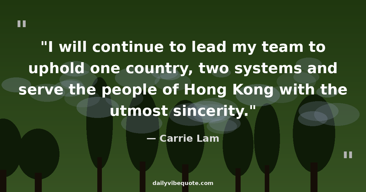 "I will continue to lead my team to uphold one country, two systems and serve the people of Hong Kong with the utmost sincerity."