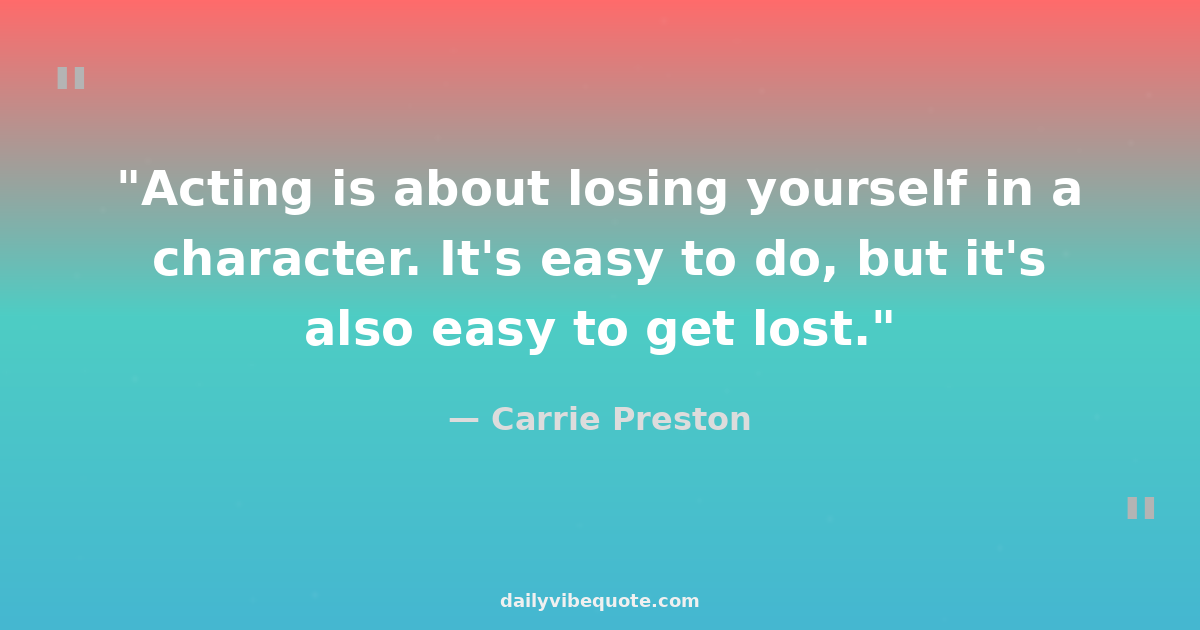 "Acting is about losing yourself in a character. It's easy to do, but it's also easy to get lost."