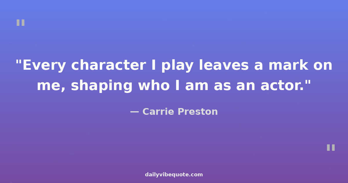 "Every character I play leaves a mark on me, shaping who I am as an actor."