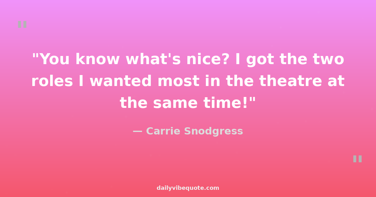 "You know what's nice? I got the two roles I wanted most in the theatre at the same time!"