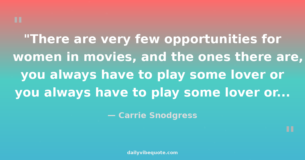 "There are very few opportunities for women in movies, and the ones there are, you always have to play some lover or downtrodden wife or the hooker or the mother."