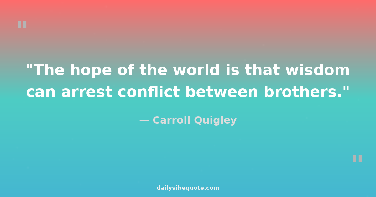 "The hope of the world is that wisdom can arrest conflict between brothers."