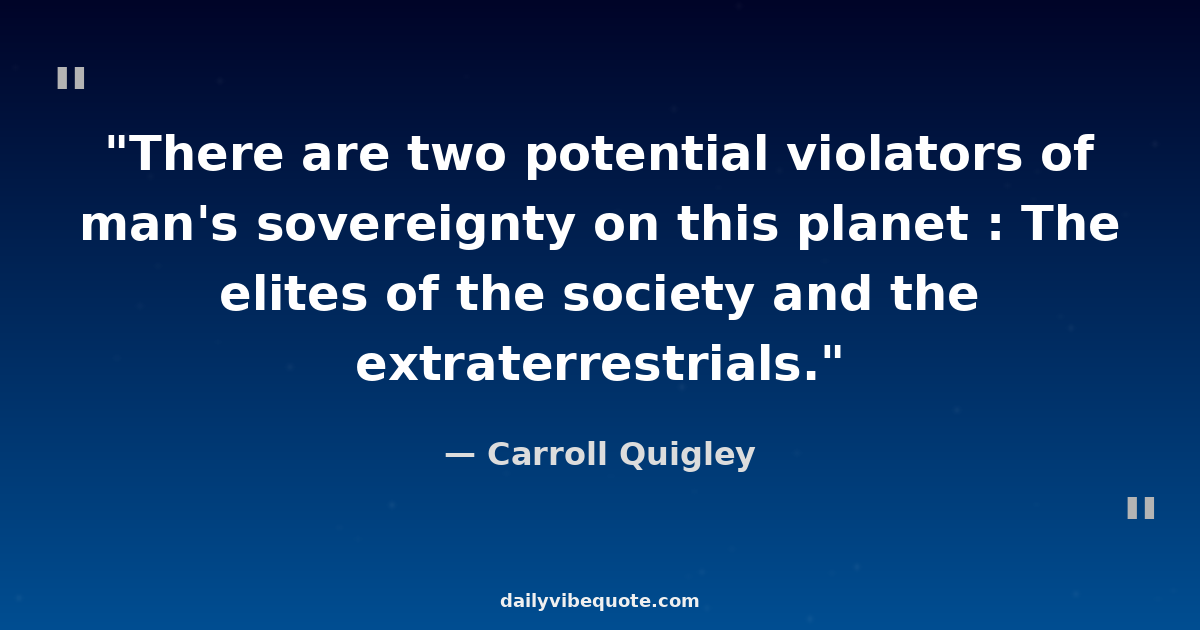 "There are two potential violators of man's sovereignty on this planet : The elites of the society and the extraterrestrials."