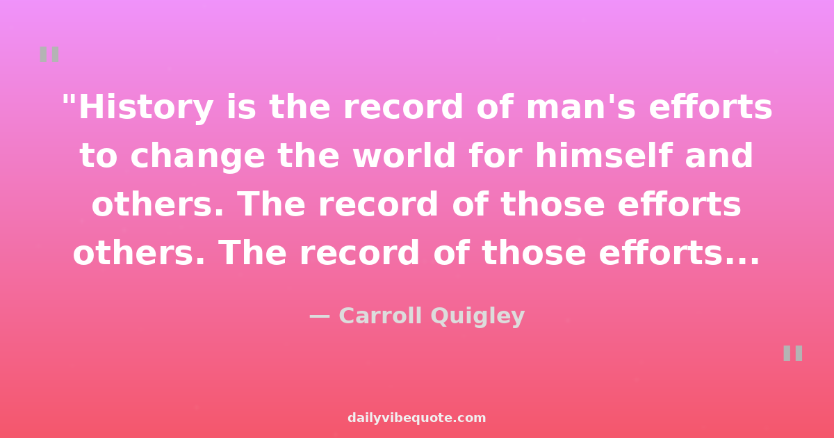"History is the record of man's efforts to change the world for himself and others. The record of those efforts shows that they have so far tried to do this in three ways: by changing men's conduct, by changing man, and by discovering new technologies."