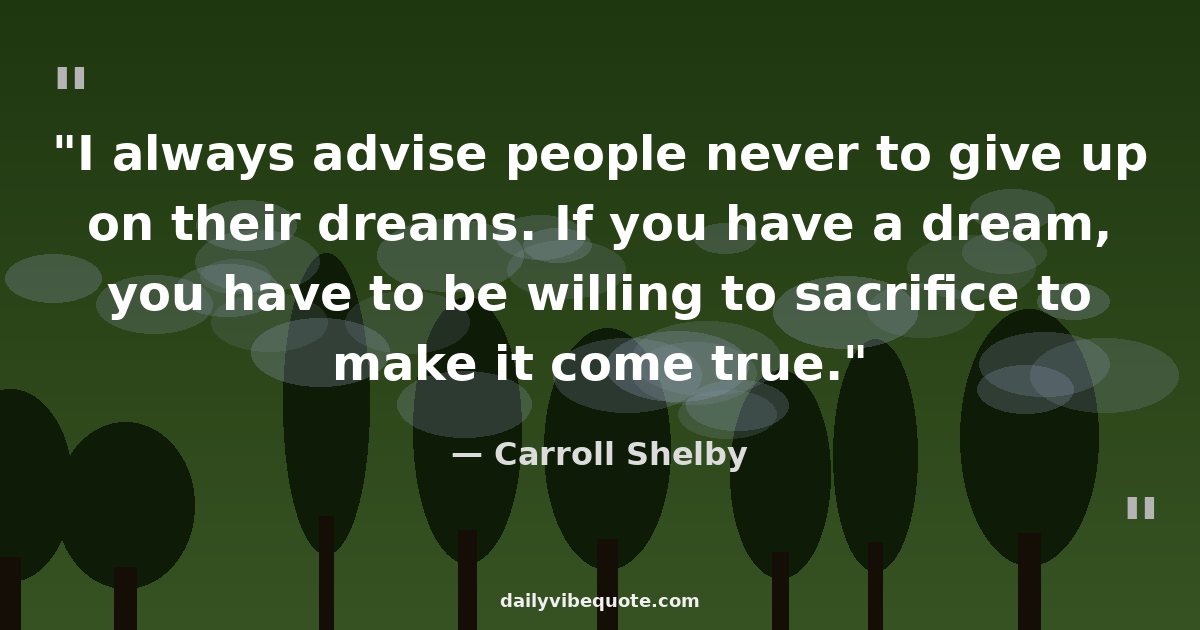 "I always advise people never to give up on their dreams. If you have a dream, you have to be willing to sacrifice to make it come true."