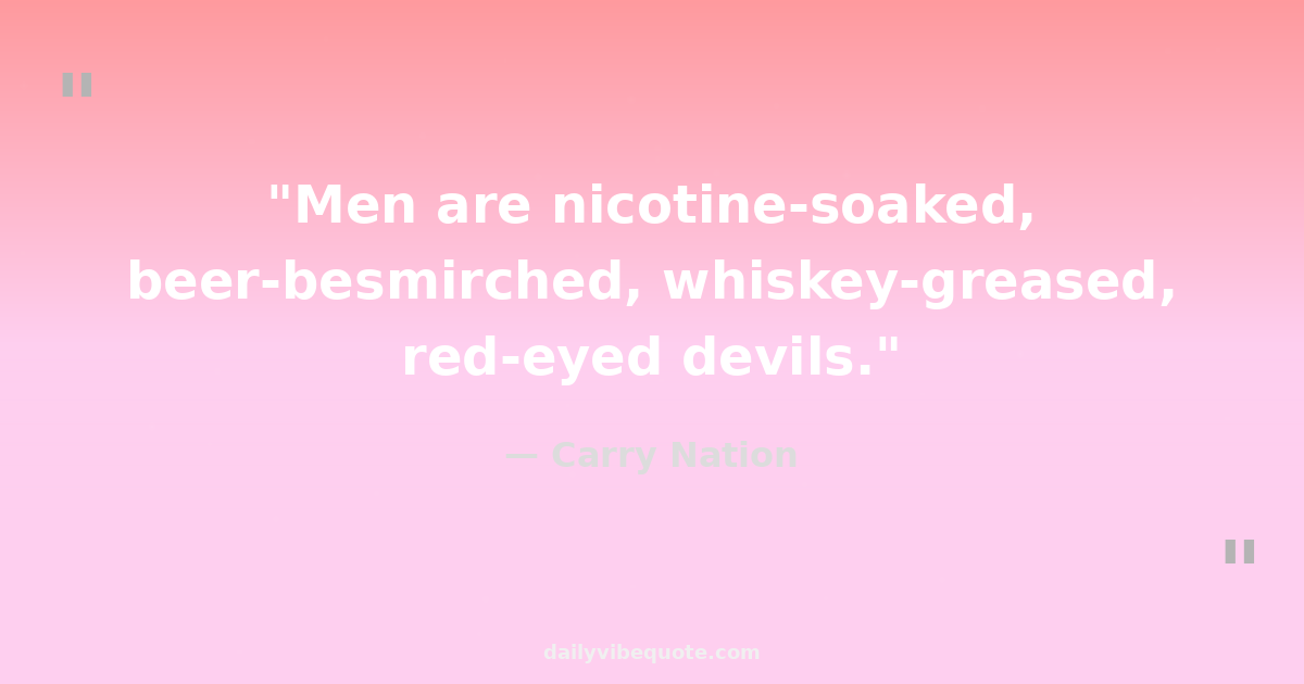 "Men are nicotine-soaked, beer-besmirched, whiskey-greased, red-eyed devils."