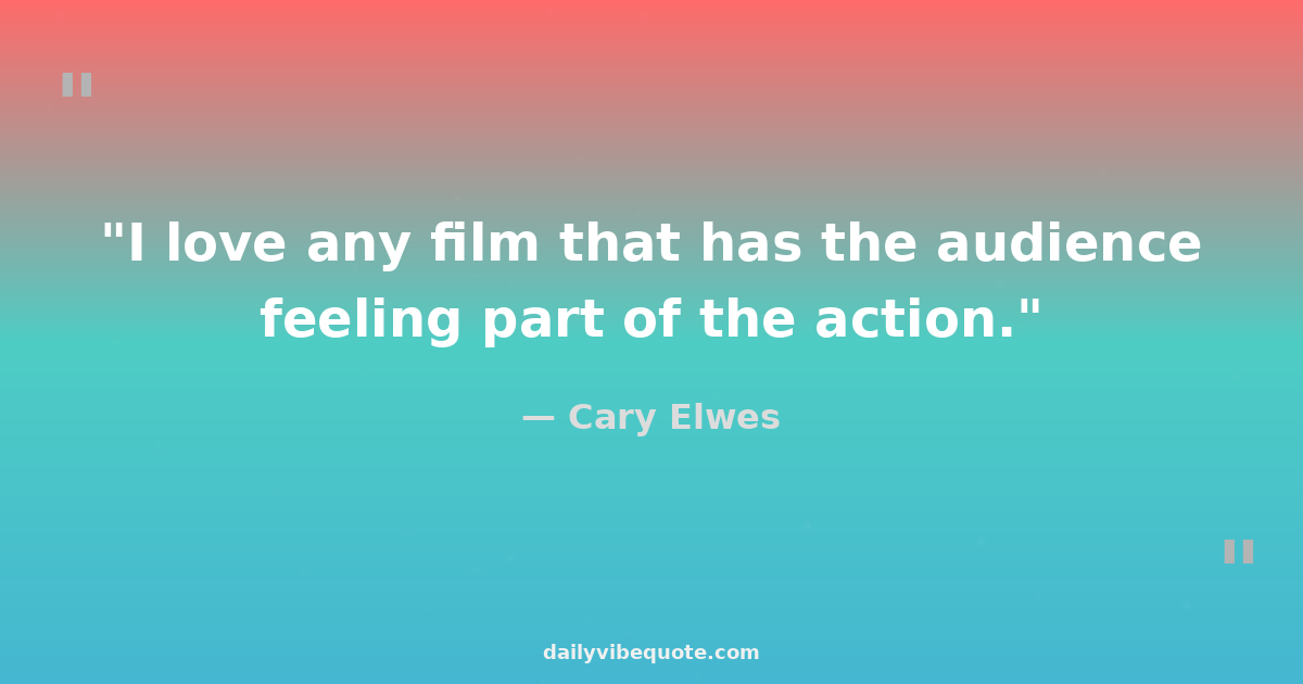 "I love any film that has the audience feeling part of the action."