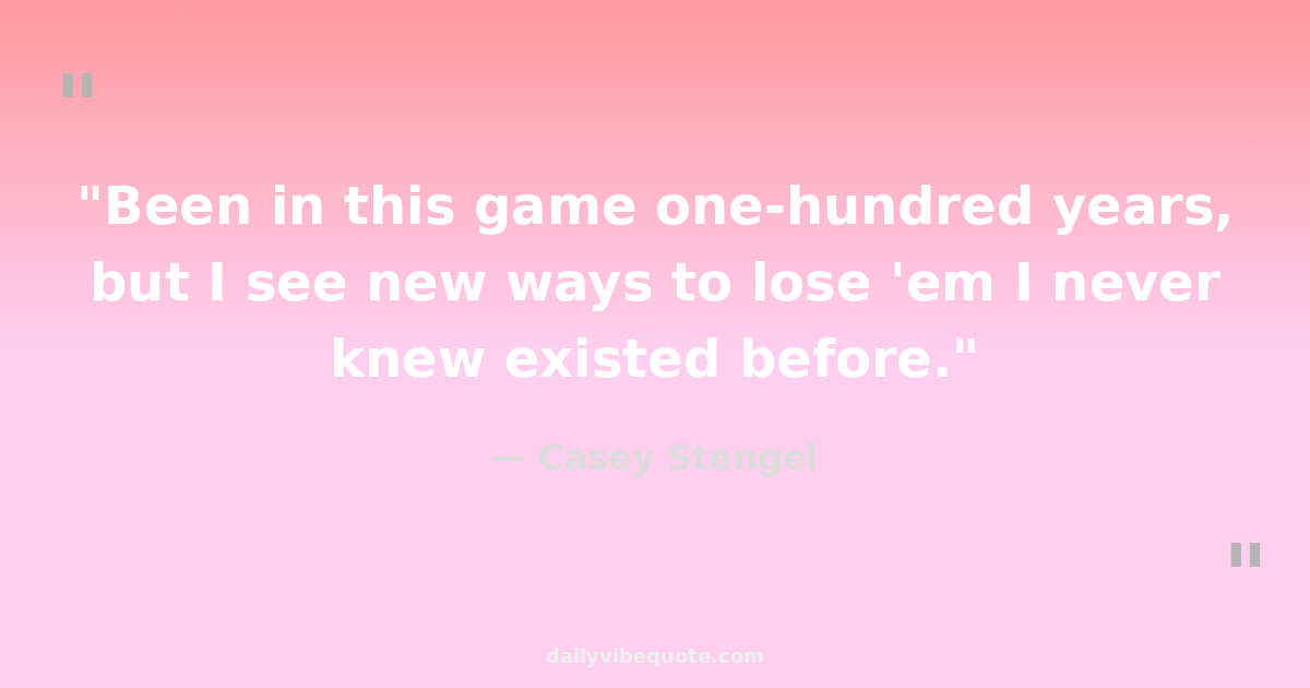 "Been in this game one-hundred years, but I see new ways to lose 'em I never knew existed before."