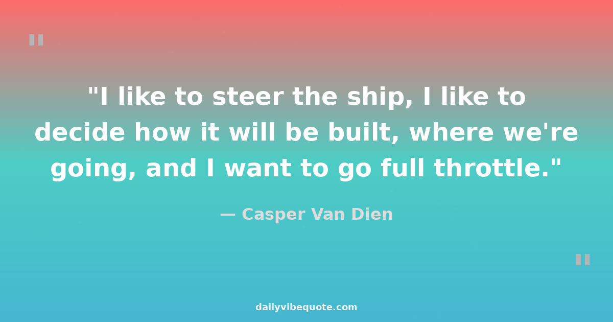 "I like to steer the ship, I like to decide how it will be built, where we're going, and I want to go full throttle."