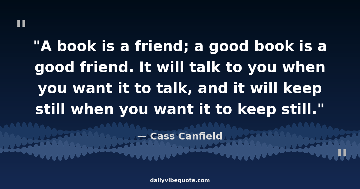 "A book is a friend; a good book is a good friend. It will talk to you when you want it to talk, and it will keep still when you want it to keep still."