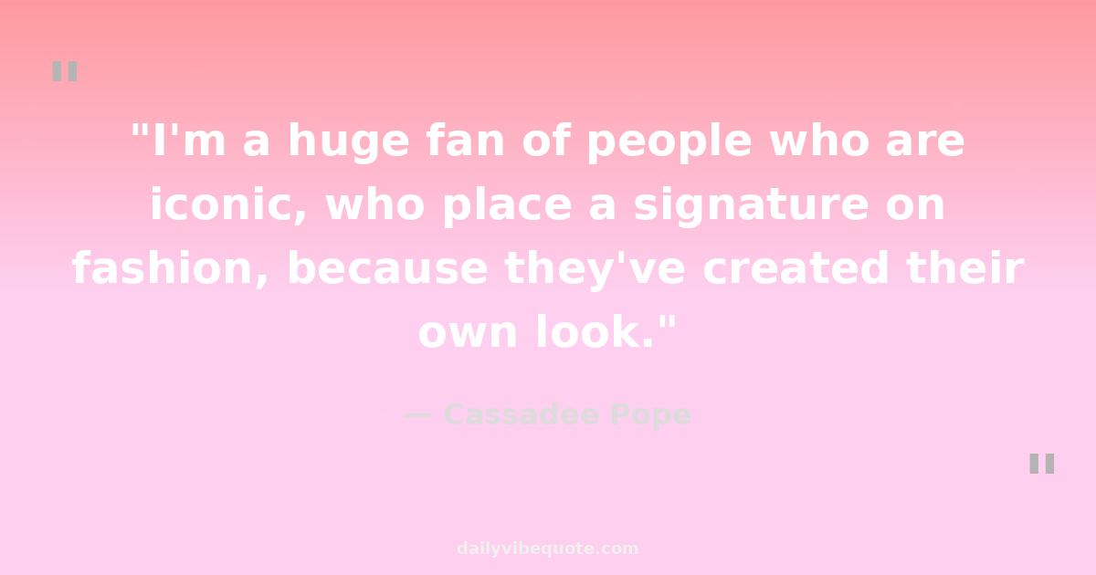 "I'm a huge fan of people who are iconic, who place a signature on fashion, because they've created their own look."